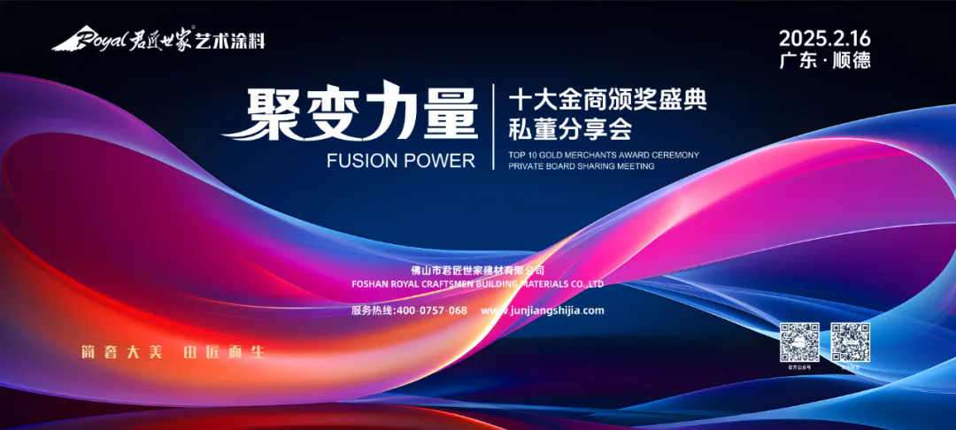 2 月 16 日,让我们相聚在君匠世家“聚变力量·十大金商(shāng)颁奖盛典 - 私董分(fēn)享会”,共同见证荣耀时刻的到来,开启品牌与经销商(shāng)携手并进的新(xīn)征程。共同书写艺术涂料行业的新(xīn)篇章,共绘属于我们的辉煌未来。