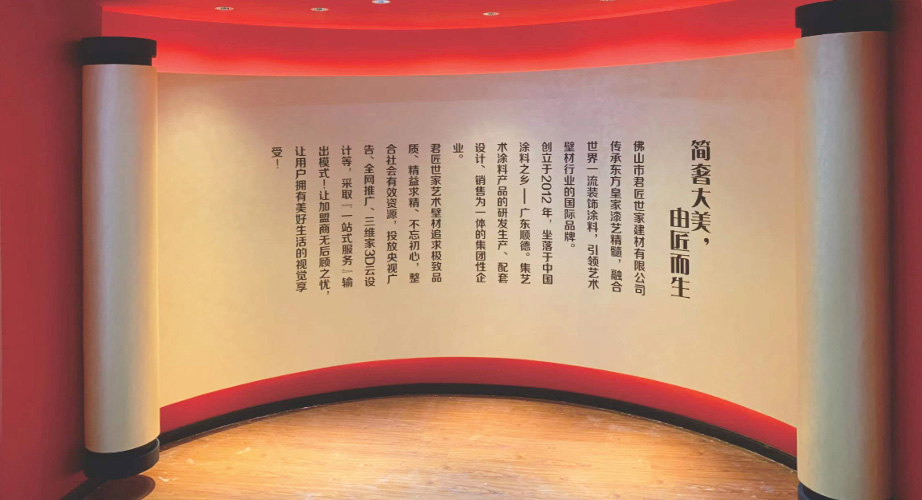 匠心守艺,粉壁丹青。2012年,李氏江夏支十七代传人李东明,正式以“君匠世家”作(zuò)為(wèi)品牌运营;李东明秉承李氏家族“传承宫廷技(jì )艺,匠心谛造卓绝"祖训,将祖辈累积的墙面装(zhuāng)饰技(jì )艺从“、批、刷”古老工(gōng)艺上不断革新(xīn),以“旧时王榭堂前燕,飞入寻常百姓家”為(wèi)产(chǎn)品与服務(wù)理(lǐ)念,传承东方皇家漆艺精(jīng)髓,融合世界一流装(zhuāng)饰涂料,引领艺术壁材行业发展。“君匠世家”将艺术涂装(zhuāng)的传承与创新(xīn)糅合天成,成為(wèi)以匠心缔造中(zhōng)國(guó)元素新(xīn)國(guó)潮的國(guó)际品牌,為(wèi)中(zhōng)國(guó)墙面装(zhuāng)饰行业引领世界潮流,增添了浓妆重彩的一筆(bǐ)。